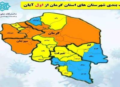 بر اساس آخرین آمار رنگ بندی کرونایی کشور، شهرستان های کرمان، زرند، رفسنجان، شهربابک و سیرجان همچنان در شرایط نارنجی قرار دارند.