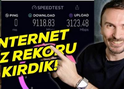 ویدئویی از تست سرعت اینترنت فیبرنوری خانگی ترکیه: دانلود 9100 مگابیت، آپلود 3100 مگابیت، پینگ صفر