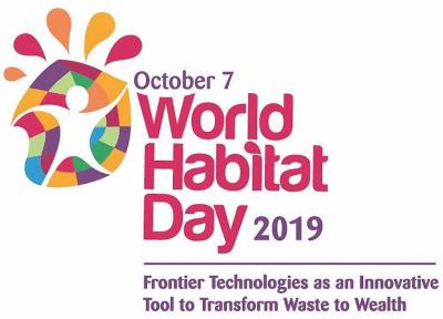 گرامیداشت روز دنیای اسکان بشر سال جاری با شعار با فناوری های جدید زباله را به ثروت تبدیل کنیم و با هدف ترویج اهداف توسعه پایدار سازمان ملل، در روز 15 مهر در شهرهایی از سراسر دنیا برگزار می گردد.