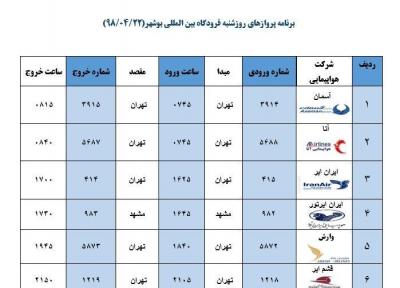 جدول پروازهای فرودگاه بوشهر