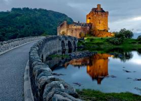 Eilean Donan , جزیره لاک Duich , اسکاتلند . نام این قلعه به نام Donnan Celtic از Eigg نام گذاری شدهاست که در ابتدا یک کلیسا را در 617 تاسیس کرد . با این همه قلعه چنانکه امروز میبینیم در قرن سیزدهم ساخته شدهاست و متعلق به خاندان Mackenzie مکنزی است .