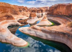 Reflection کانیون , منطقه تفریحی ملی گلن کانیون , آمریکا . پیدا کردن طرف دریاچه پاول در مرز یوتا و آریزونا , شگفتی طبیعی شگفتی طبیعی است . این دره که تصاویر آنها از بازدید کنندگان الهام گرفته بود تا به دنبال این مکان بگردند , قبلا بر راهنمای سفر تسلط نداشته...