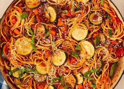 طرز تهیه اسپاگتی گیاهی خوشمزه و مجلسی